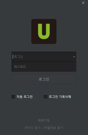 회원 가입 시에 사용한 아이디와 패스워드를 입력하면 프로그램이 실행됩니다.