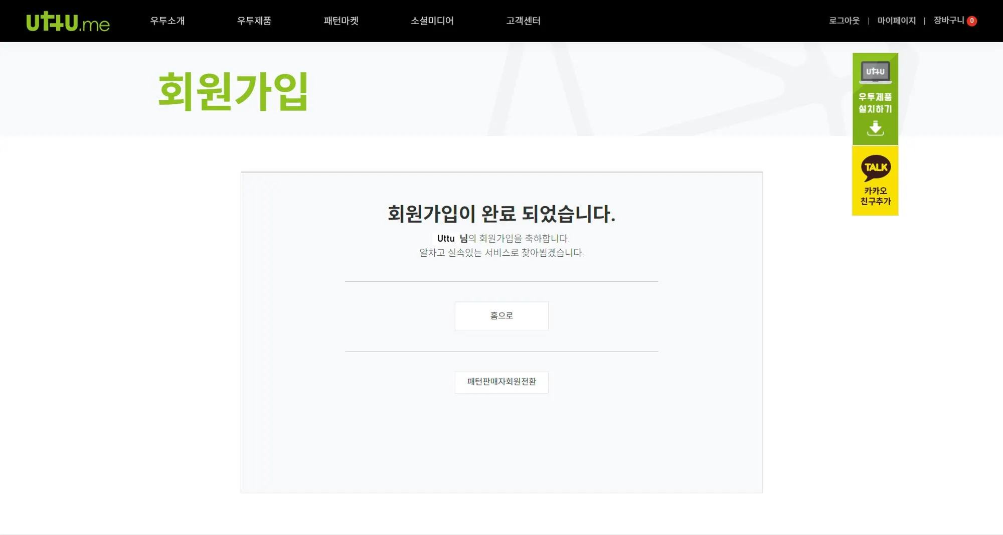 Uttu 회원으로 가입하기 위해서는이용약관 , 개인정보처리방침에 동의하셔야 합니다.