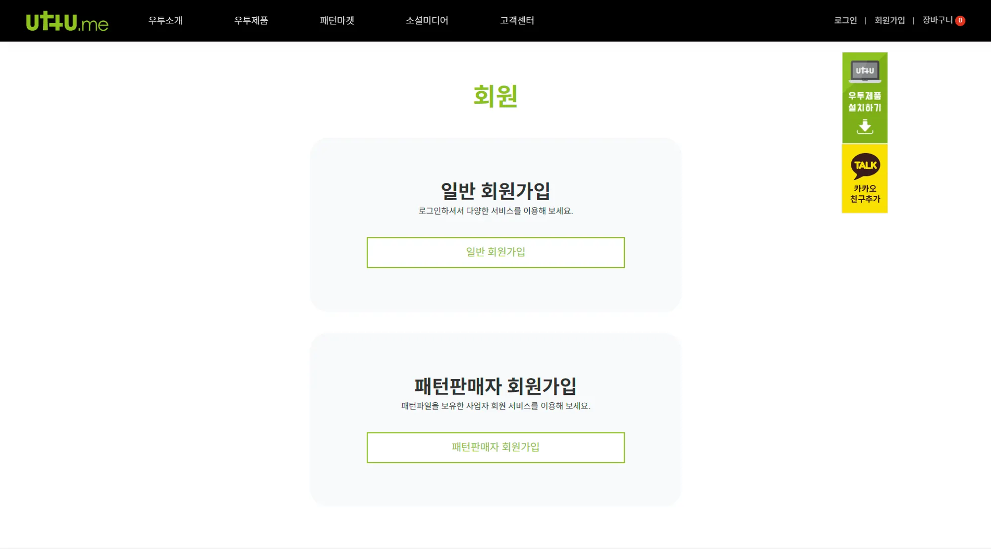 일반 회원가입과 패턴판매자 회원가입 중 하나를 선택합니다.